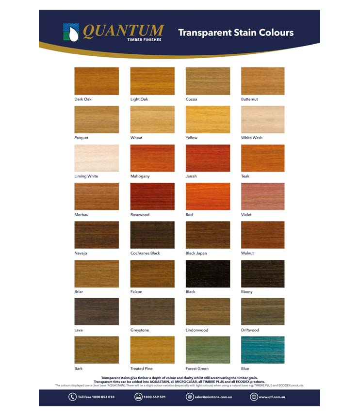 Quantum Transparent Tint bottles come in a choice of 32 standard transparent stains, giving you the freedom to create the look you want for all your interior and exterior timber projects. Simply add the premeasured tinter into the base product to achieve the colour you want.
